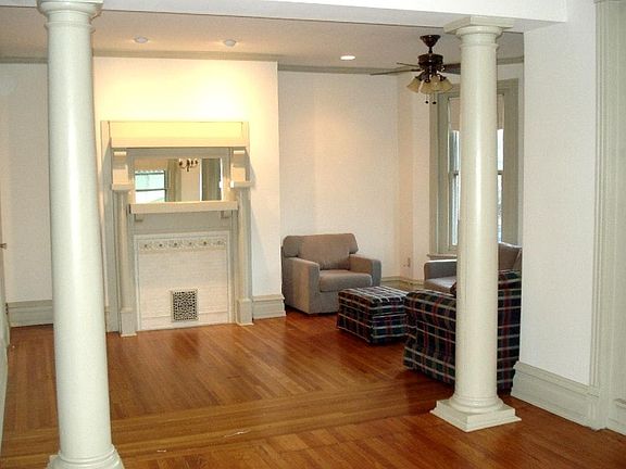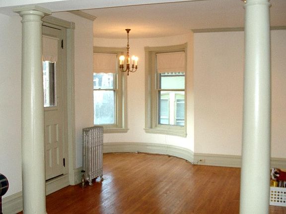 Upscale apartment in Historic Centre Park Mansion: Grand entrance foyer, extra large living room with decorative mantle, hardwood floors, and access to private deck. Two large bedrooms including master with walk-in closet and half bath. Dining room with built in corner cupboard, tiled full bath, eat in kitchen with cooktop, wall oven, dishwasher. Spacious yard. Rent includes: heat, water,trash, recycling, snow removal, lawn care. Tenant pays : electric, cable. Laundry on premise, separate garages available to rent, Pets allowed w landlord approval. $1,250.00 per month plus security deposit Rent includes: heat, water,trash, recycling, snow removal, lawn care.