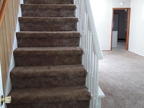 3 bedroom,1 bath home, washer/ dryer hook ups in basement, double garage with opener, small fenced in yard,1 small dog or 1 cat accepted with $300 non refundable deposit and insurance. Tenants responsible for all utilities, lawn care and snow removal, rental insurance required if tenant has pet