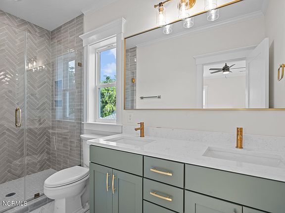 Excellent opportunity to own a gorgeous custom new construction home in the heart of downtown Wilmington just a few short blocks to the Brooklyn Arts District and a short stroll to the Live Oak Bank Pavilion and award-winning Riverwalk. This 1,593 square foot, 3 bedroom, 2.5 bathroom home exudes luxury and convenience with its gorgeous finished in place hardwood floors, stunning tile details, and premium features throughout. The seamless flow of an open floor plan welcomes gatherings, with a spacious living room, dining area, and well-appointed kitchen ideal for entertaining with its gorgeous exposed wood floating shelves, beautiful tiled backsplash, stainless steel appliances, Craftsman style solid wood soft-close cabinets, and a bar overhang for additional seating. Off the dining area, step outside to the rear covered porch, where you can unwind in the evenings with friends and family after a fun day exploring downtown Wilmington. The backyard overlooks the old railroad tracks which are set to transform into a future park and green space, promising a scenic retreat right at your doorstep. Upstairs, you'll find the impressive master suite with a large walk-in closet and en suite bathroom featuring double sinks, granite countertops, and a gorgeous tiled walk-in shower. Two additional bedrooms, the second full bathroom with a beautiful tiled shower/tub, and the laundry space complete the second floor. This prime location is only steps to the infamous One Tree Hill Bridge and conveniently located a few short blocks to numerous dining, shopping, and entertainment options. Call today to make this stunning new construction home yours!