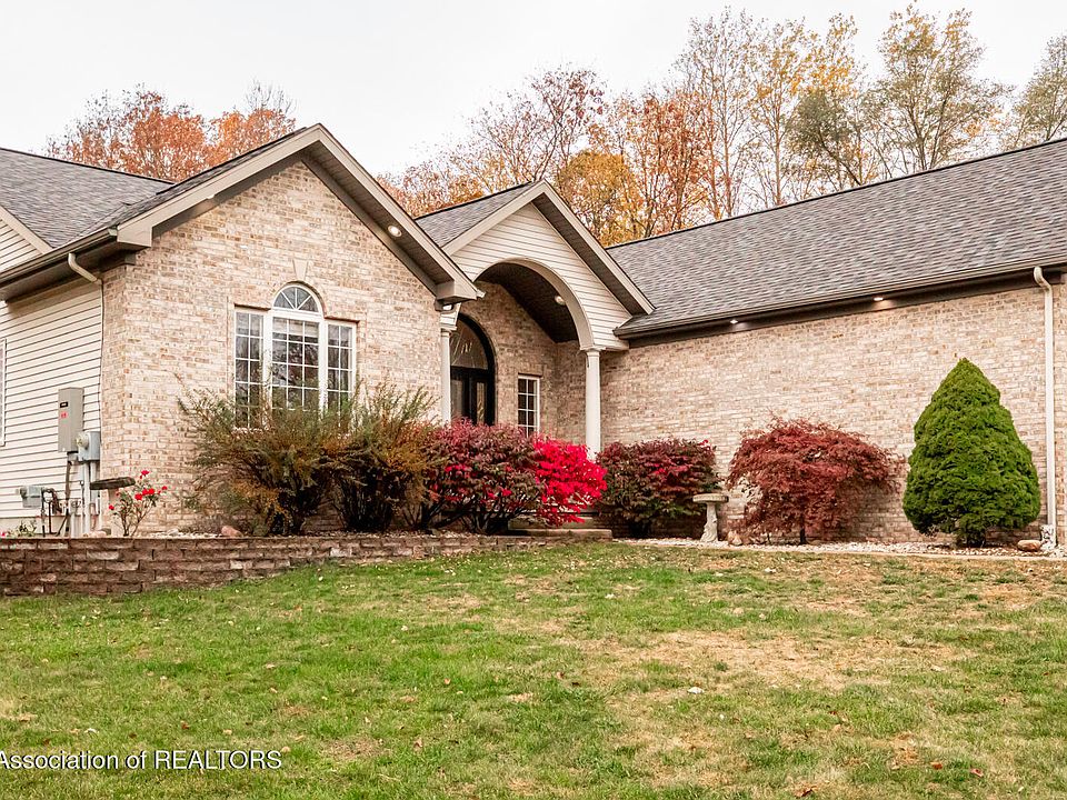 Wonderful offering! Walk-out ranch setting high up on a spacious 3.9-acre private lot with amazing views in every direction. Approx 2,703 +- sq. ft. of finished living space. Enjoy the spacious foyer with access to the main floor study with a French door, hardwood floors. Large open kitchen with over-sized eating bar and beautiful hardwood cabinetry. A beautiful dining area with hardwood floors, wet bar or coffee bar with a sink, pantry, plus loads of windows bringing the outside in. Access to the 4 seasons room with cathedral ceilings plus an arched window. overlooking the lovely, wooded lot. A custom 3-sided gas fireplace in the cathedral ceilinged great room with great private views. Note the solid 6 panel interior doors. The back hall gives access to the 1st floor laundry with built-ins, garage, and half bath. A good-sized primary suite with balcony, double walk-in closets, and a private bath including a whirlpool tub, double headed stand-up shower, double sinks, and separate vanity area! Open staircase leading to the professionally finished lower level including 2 large bedrooms, full bath, and spacious rec room with sliders leading out to the over-sized stamped concrete patio with sun setter awning and screened-in porch. All of this perfectly nestled on a picturesque lot of nearly 4 acres where wildlife abounds. Enjoy the peach and cherry tree too! Large pole barn offering a 20X30 workshop and a 20X30 tractor & tool shed as well! Furnace 2024. Generac whole house generator 2024. New roof 2023. Hot water heater 2023. Low Eaton County taxes. Easy access to highways and to the GM Delta secondary complex. Only minutes to downtown Lansing. See sellers list of upgrades.