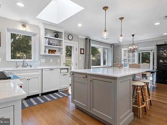 713 Newtown Road in Villanova is a jewel box on the Main Line, offering timeless charm with modern updates. This beautifully renovated ranch home, set on a picturesque one-acre lot in sought-after Radnor Township. Built from solid Mica stone, the home is in excellent condition and ready to enjoy. A bright, open floor plan welcomes you, where a recently added support open concept kitchen and family room creates a seamless flow between the kitchen, dining, and living areas.The foyer, flooded with natural light from a skylight, sets an inviting tone. Throughout the main living areas, refinished custom oak floors and detailed millwork add warmth and elegance. The fully remodeled kitchen is a chef’s dream.Custom white and gray cabinetry pairs beautifully with white quartz countertops featuring striking gray veining. A center island with a prep sink and seating for four makes both cooking and entertaining effortless. High-end appliances include a Wolf six-burner range, a 42” Sub-Zero refrigerator, a Bosch dishwasher, a GE Advantium oven, and a Best 10” exhaust fan. Sunlight floods the space from a skylight above as well as a glass door leading to the backyard, creating a bright and inviting atmosphere. Just off the kitchen, a sophisticated wet bar enhances convenience and style. Custom white cabinetry with open shelving, glass-front doors, and standard storage is complemented by black soapstone countertops and a herringbone tile backsplash. A built-in beverage refrigerator and sink make entertaining easy, while a desk area offers practicality. A peninsula island with seating provides a natural gathering spot, while the space flows seamlessly into the living room, where deep-silled windows fill the room with natural light. A beautiful wood-burning fireplace with a detailed mantel and herringbone tile surround serves as a focal point. A true highlight of this home is the updated sunroom, now a year-round retreat with the addition of heating and A/C. This 13’ x 18’ space added 234 sq. ft. to the main level and features oversized insulated sliding windows. Whether unwinding with a book, watching a favorite show, or simply enjoying the changing seasons, this room offers a serene escape. Three spacious bedrooms and two renovated bathrooms are located off the main living areas. The primary suite features a walk-in closet and an updated en-suite bath, while the two additional bedrooms offer ample space. The third bedroom is currently used as a home office/den, offering flexibility. A second beautifully renovated bathroom completes this level. Additionally, the floored attic presents an opportunity for future expansion. The newly finished lower level adds 578 sq. ft. of living space, including a generous bonus room (20' x 12.5'), a dedicated laundry room (10' x 12'), and a climate-controlled wine cellar (8' x 8'). A 12' x 12' salon with plumbing was designed for the current owner’s use, providing additional flexibility. The picturesque backyard features an updated paver patio and an elegant slate walkway, offering a private setting with mature landscaping. In the spring, rhododendrons burst into bloom, while surrounding trees attract a variety of birds and wildlife. Additional upgrades include a new insulated door and opener for the attached two-car garage, newer insulated windows, high-efficiency gas heat, a new central A/C system (installed six years ago), and 200 AMP service. Basement and sunroom have added HVAC systems. Ideally situated on the Main Line, this home provides quick access to the Blue Route (I-476), the Villanova train station (less than two miles away), and a wealth of shopping, dining, and recreation options. Enjoy The Willows Park or the 4.8-mile Radnor Trail, both offering walking trails. Located in the highly sought-after Radnor School District, this home is a rare blend of charm, warmth, and modern convenience. *(square footage is estimated from public records and the attached floor plans).