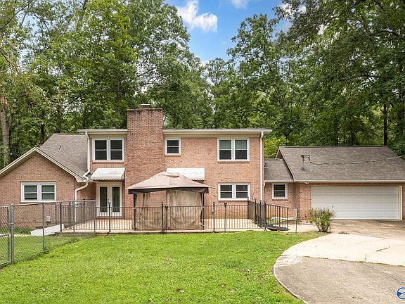 Country privacy in the City! 1.5 miles from highway 72, 1/2 mile to I65. There are 4 bedrooms here, two up and two down. Storage here...large walk in area floored in the attic upstairs. (19x28) Family living areas to include a formal dining, living room plus a spacious den. The den has a gas log fireplace. Step into the large kitchen with breakfast area for family gatherings. The washer, dryer, refrigerator all convey. The laundry room has a half bath and dog grooming area with a pull out shelf. Three of the bedrooms have built-ins. An automatic lift is in place to access upstairs. Experience privacy in the fenced rear yard. Carport & Shed convey. New roof. Radio Intercoms present. ADT