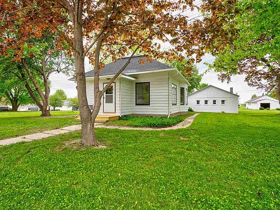 Beautifully updated 2 bedroom, one bathroom home on a huge corner lot in Sigourney! A spacious living room with original hardwood floors greets you from the entryway. Formal dining room with large bumped out windows that let in great natural light. The kitchen has new flooring, fresh paint, great cabinet storage, and all new stainless-steel appliances. Nice master bedroom and remodeled bathroom. Second bedroom with two closets. Conveniently located main floor laundry area. New roof including plywood underlayment. Additional recent updates include: some new windows (fall 2022) fresh paint throughout, some new electrical, some new water lines, added attic insulation, and extensive tree trimming. Two car detached garage!
