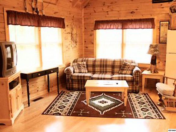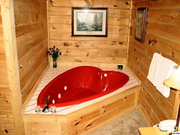 If your looking for a romantic get away, then this is your chance. Sweet one level cabin with double sided gas fireplace, placed between the bedroom and living room. open floor plan full kitchen and fully furnished. Bedroom features a heart shaped whirlpool tub in addition to the hot tub on the back porch. Nestled in the back of Eagles Ridge but close to the action of Pigeon Forge, shopping in Sevierville and nostalgic Gatlinburg.