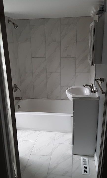 Move in ready! Beautifully updated bathroom and kitchen. New appliances. New vinyl waterproof flooring on 1st floor. Upstairs new carpet. Large kitchen, living, and dining rooms. Large bedrooms.