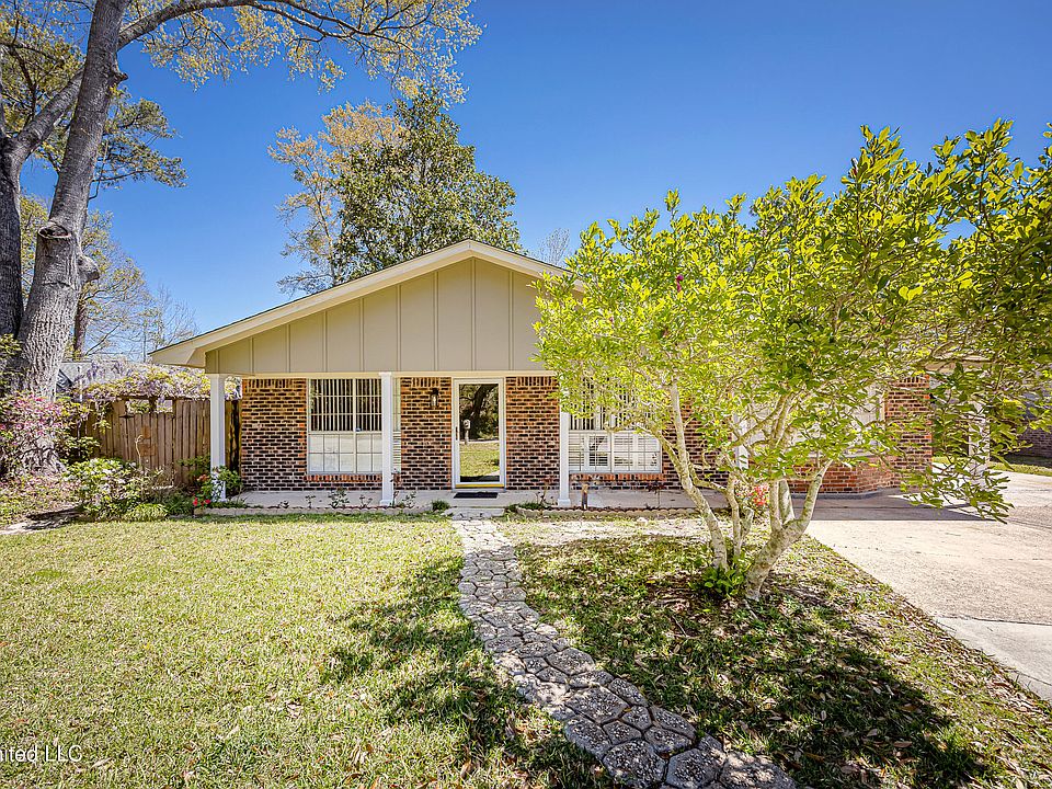 BACK ON THE MARKET WITH NEW RENOVATIONS! THIS 3 BEDROOM, 2 FULL BATH DOLLHOUSE is situated in the highly desirable Ocean Springs school district, and is a short golf cart ride to downtown. Enjoy the convenience of being just minutes from shopping, restaurants, entertainment museums, and also the beautiful white sandy beaches, all while nestled in a private, quiet, and friendly street. This is what coastal living is all about! This renovated move-in ready home can be yours and is priced to sell! This updated beauty features mature landscaping with fruit trees, completely fenced yard, gutters, workshop with A/C & vinyl plank flooring (perfect for office or additional living space) PLUS an additional storage workshop, extra side driveway/parking for a golf cart, boat or possibly an RV. Inside you will find a kitchen that is a chef's dream, featuring gorgeous custom 42'' custom white cabinetry with quartz countertops, and new stainless appliances. No carpet (all wood floors and vinyl plank flooring), newly renovated bathrooms with quartz countertops, plantation shutters up front, new interior paint, new light fixtures, fabulous sunroom to hang out, newer roof, and new tankless water heater. No flood insurance required! With its prime location and simply fabulous updates, this home offers the best of downtown living with comfort and style. Don't wait! LOCATION, LOCATION, LOCATION!!!!!