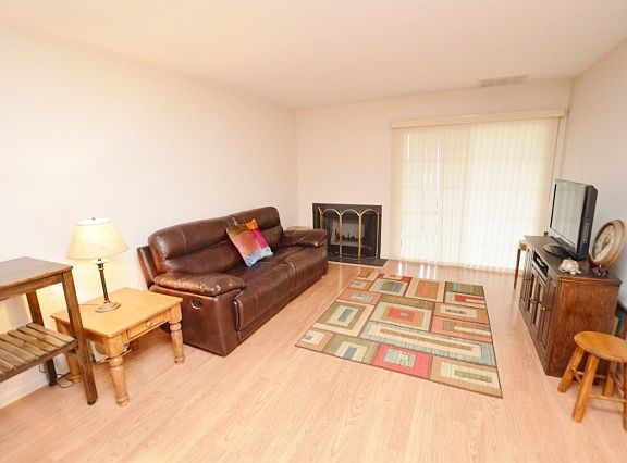 Beautiful move in condition end unit condo with working fireplace. Newer kitchen with tile floor. Sliding doors open to a covered patio. 24 gated community with in-ground seasonal pool. New Central air with forced air heat. New furnace and new hot water heater. Recessed lighting throughout. New wood work and upgraded doors.