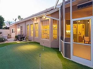Sensational 1-story remodeled home located on a quiet cul-de-sac with incredible outdoor experience. Enjoy the professional 4-hole putting green in your own yard while entertaining on your covered and screened patio, cooking on the custom summer kitchen, and swimming in your heated pool. The open kitchen is a chef's delight that has been recently remodeled with beautiful wood cabinets, granite countertops, gas appliances, French-door GE Profile refrigerator, an island with a stainless steel sink, and lots of counter space for the cooking enthusiast. Outstanding split floor plan adds privacy for when your guests arrive. Inviting and open feel with volume ceilings and tile floors throughout. The master bedroom is spacious with a huge walk-in closet. Home features a whole house generator.