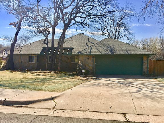 Exceptional and rare define this contemporary beauty in Edmond's Timber Ridge neighborhood. The large corner lot is picture perfect with mature trees and sits on almost 1/3rd of an acre. The kitchen features a large island, pantry & eating space with a sweeping wall of windows overlooking the inviting pool and patio. The formal dining with beautiful built-ins looks over the expansive living room with a grand fireplace. Master features 2 sided fireplace, whirlpool, & walk-in closet. Guest bedrooms are a mother-in-law plan with Jack and Jill bath. The home features an open floor plan and its many windows make it bright and cheery. Located just a mile from UCO & downtown Edmond. Timber Ridge features a pool, park, & play area. Buyer to verify schools.