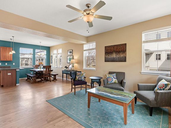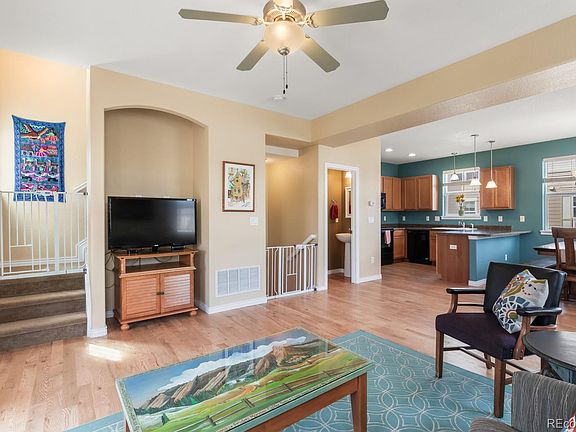 Desirable end unit in Coal Creek Village. Sun filled main level living rm flows into the kitchen/dining area,beautiful wood floors throughout main level.Covered balcony overlooks quiet community & beautifully maintained park.Spacious 2 bds w/ 3 baths, including powder room on the main level.Two car garage and large laundry room offer extra storage space. One mile from bustling Old Town Lafayette and just blocks away from Coal Creek bike path.Ten minute to Lafayette RTD, easy access to Blder/ Den
