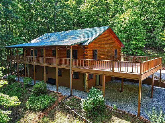 Solid Log home situated on over 2 Acres of Unrestricted privacy in Trackrock! Updated: New metal roof, lighting, HVAC, flooring, paint inside and out, appliances, etc! Main level living features Great room with wood flooring, gas fireplace, 2 bedrooms, 2 full baths, laundry room. Lower level has huge entertainment room or large bunk room with great storage closet, full bath, one car garage area and home office. Huge decks and covered porches to enjoy the peaceful outdoors. 16 x 32 detached garage/workshop. Concrete driveway, private well, seasonal mountain views, garden spot, fantastic Mountain cabin for weekends, or full time living. MOVE IN READY!