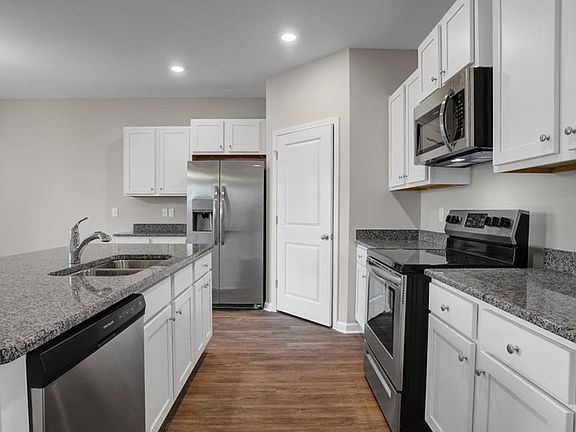 The Cali is a beautiful 1,775 Sq. Ft. open floor plan that offers 9' ceilings, 4 BR and 2 full baths all on one level! The spacious kitchen offers plenty of cabinet and counter space with a large walk-in pantry. The over sized granite counter height island overlooks the Living Room and Dining Room which is perfect for entertaining. Huge owner's suite with large owner's bath that offers double vanity and sink, 5 ft. walk-in shower, and large walk-in closet. Sliding doors off the dining area lead to the 8 x 10 covered porch. Riverside is a natural gas community as well. The home also has a tankless water heater. This home has it all! Photos are of similar home.