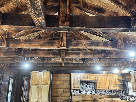 Solidly built log cabinMade his own logsSpacious bedroomsBuilt his interior doorsEnclosed back porchMade his own trusses