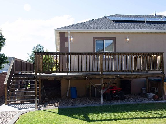 This is a must see home with lots of cabinet space & a good sized pantry in the kitchen; the adjoining room is perfect for a dining room or office. The bedrooms are all very spacious, and the master includes 2 closets, a separate tub & shower, and an entrance/exit to the deck! There is a lot of built in shelving & plenty of storage space!! The interior & exterior stairs leading to the basement are extra wide, making it easier to move furniture in and out! There is a lot of space downstairs for living, office, and play areas! The fully landscaped yard has attractive curbing and a block wall with 3 gate entrances!! Under the large deck is gravel for low maintenance and extra storage space! There are also fruit trees, raspberry bushes, and a large cement pad with 2 basketball hoops!