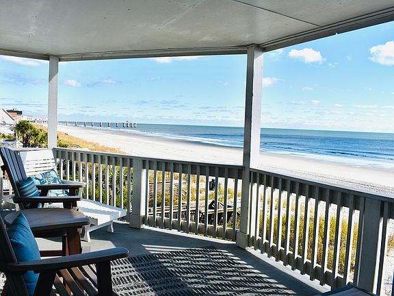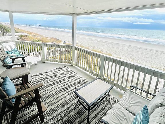 Take in the stunning sunrise, peaceful sunsets, and panoramic views of the Atlantic Ocean from this beautiful two bedroom two bath oceanfront condo in Surfside Beach. This end unit offers an open floor plan, plentiful natural light, spacious rooms, and an incredible balcony with access to both the master bedroom and living room. Take the private door on the balcony to have direct access to the beach. Additional features include an entry foyer, laundry room with a full size washer and dryer and plentiful storage, front and rear entries, a large storage closet under the complex. Located in the highly coveted heart of Surfside Beach it is a short stroll away from the new pier and great area restaurants. This amazing condo is being sold fully furnished and is a can't miss opportunity. Whether to keep as as an amazing rental property or for your own private oceanfront getaway. Nestled on the breathtaking Carolina coastline and a short drive from all the magnificent shopping, fishing, dining, golf, and entertainment the grand strand has to offer. Square footage and HOA information to be verified by buyer/buyers agent