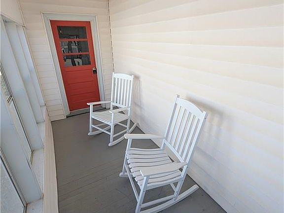 This adorable bungalow style home will surprise you at every turn! First, it has a cozy front closed in porch, perfect for soaking in the day. The home features 2 large bedrooms, one of which has an 8*10 attached room for a walk in closet, office, or private game room. The second has it's own special feature as well, it's own bathroom! Both bathrooms have had a full remodel recently. The kitchen is a great size for the eat-in area, and comes with the gas range/oven, built in microwave, and dishwasher. The back landing is large enough for extra storage, a second freezer and the washer/dryer. But what you don't expect is the staircase down to the 9*10 fully cement storm shelter! So you always have the comfort of protection, without sacrificing being inside your home.