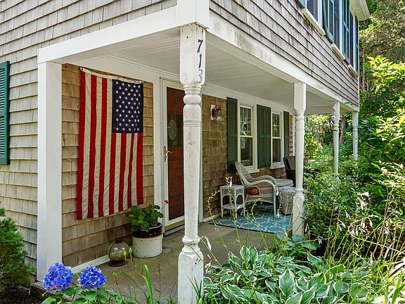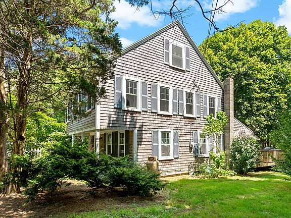 Hand hewn beams, with original forged nails, mature plantings and circular driveway on nearly a half acre lot. Vintage antique salt box, three bedroom, one and half baths located minutes from Falmouth Center and Mashpee Commons. The property includes a restored barn that will accommodate one car, ideal for hobby farmers, as it is agriculturally zoned. Great for those who want to put their own stamp on their forever home. The home is heated by oil. A Vermont Casting propane gas fireplace provides additional charm and warmth. The kitchen is both practical and convenient, featuring a laundry closet and half bath. Access to basement is through the bulkhead with steep stairs to the boiler and oil tank. The second floor houses three cozy bedrooms and a bath. there is ample attic storage. On the first floor the dining room has access to large deck at rear of home. This home is attractive to anyone with a passion for history, as it was an old sea captains home from Nantucket. Buyer to verify all information herein.