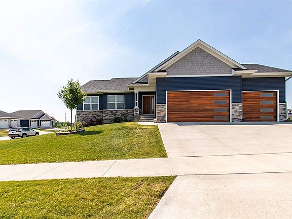 The home of YOUR dreams is awaiting new owners! A captivating move-in ready ranch on the East side of Iowa City built by HBD. This home sits on a large corner lot located in on-growing and sought after community of Churchill Meadows! Main floor has 2 Primary suites with walk-in closets and private baths with luxury tiled walk in shower. Very spacious and open great room / dining room / kitchen floorplan perfect space to entertain family and friends. The breathtaking kitchen features plenty of storage and counter top space, enormous island with quarts counter tops throughout, luxury white cabinets, black titanium appliances, and a high powered Zephyr range vent. The warm dining area guides you out to the 10 X 26 deck through a 10 ft, 4 panel sliding door. There is a gas line available on the deck and ready to host epic BBQs! Fully finished lower level with 2 generously sized bedrooms, 1 spacious bath, an extravagant wet bar/kitchenette area, and walkout rec room that leads you out to the back patio. Conveniently located near I-80 with easy commute to downtown, U of I Hospital, dining, shopping, and events. What more can you ask for? Schedule your showing today!