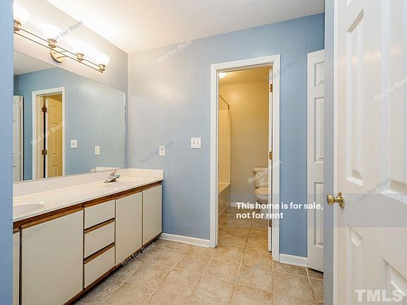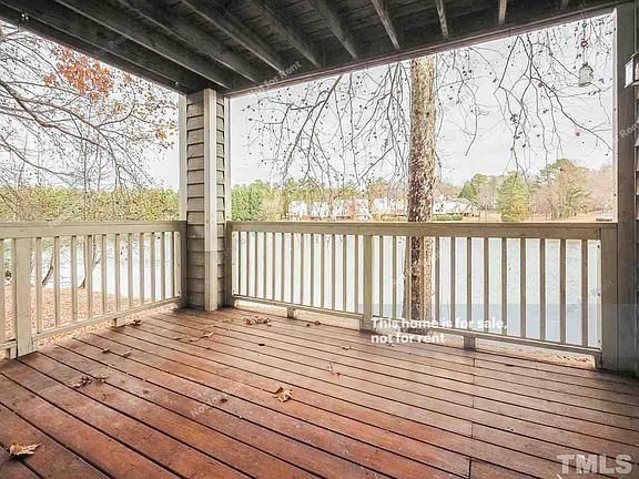 This Cary home offers granite kitchen countertops, a fireplace, and a covered deck.