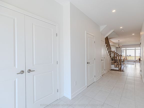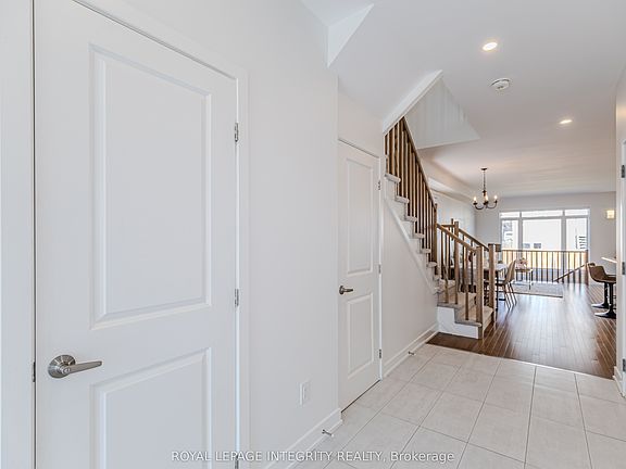 This beautifully maintained executive end unit townhome offers over 2,160 sq ft of thoughtfully designed living space. The main floor features hardwood flooring, a welcoming foyer, and an open-concept living and dining area. The upgraded white kitchen boasts quartz countertops, a walk-in pantry, an oversized island with a breakfast bar, and stainless steel appliances. Upstairs, the spacious primary bedroom includes a luxurious ensuite with quartz counters and a glass-tiled shower. You'll also find a convenient second-floor laundry room, a 4-piece main bathroom, a linen closet, and two generously sized bedrooms with large windows providing ample natural light. The lower level features a spacious family room with a cozy gas fireplace and an abundance of natural light. There is also a rough-in 3-piece bathroom and a mechanical room with ample storage space. Located within walking distance to schools, shopping, restaurants, daycare, and other amenities.