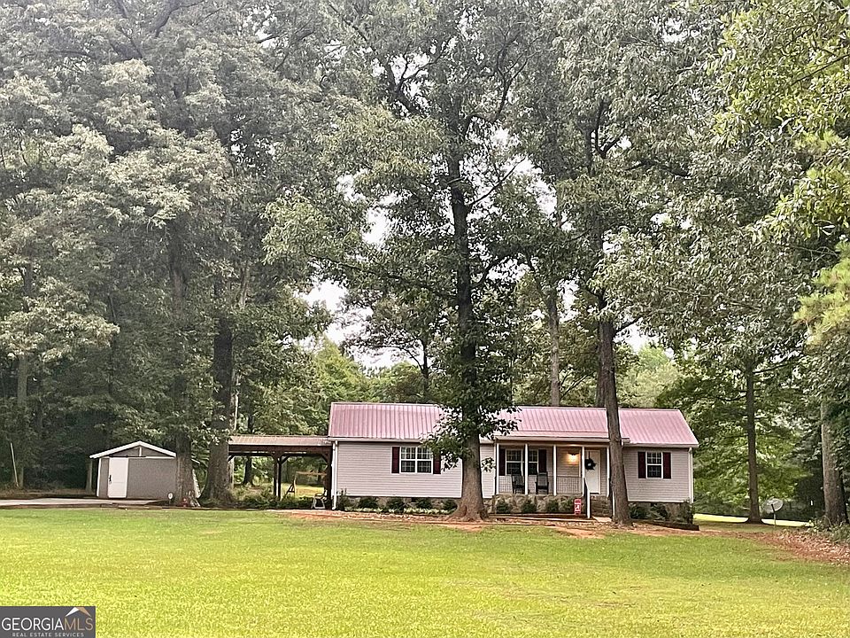 Are you looking for both seclusion and convenience? Look no farther. This home sits on 4.34 acres, 10 mins from 75 but tucked away on the outskirts of Spalding county. This ranch style home has been completely renovated. Renovations include, new flooring throughout, all new light fixtures, tin metal roof, board and batten in bedrooms, new granite countertops throughout, walk-in bench style shower in master, beautiful French doors that over look the peacefully secluded back part of the property, new gravel spread on lengthy driveway that leads to a 15x17 fully electrical shed and covered carport with matching tin roof. From front porch sitting to gardening or watching the wildlife on the back porch, this could be your country style living. Schedule your showing today. This one won't last long!
