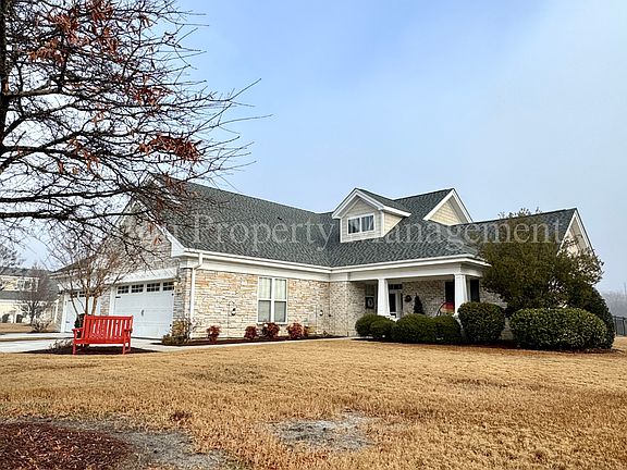 Luxury living! From the manicured lawn, quiet front porch through the grand entry to the backyard oasis! Enter this open floor plan with trey ceilings in the living area, vaulted ceilings, gas log fireplace* to the four season room. The kitchen boasts granite counter tops, bar, stainless steel appliances, and plenty of cabinets. The appointments of this home cannot be overstated. Bright light shinning in from ample windows throughout and luxury flooring. Find spacious living in the primary bedroom with a garden tub and dual vanity in the bathroom. One additional bedroom and bath provide room for family and guests. The 2-car garage provides ample space. Relax in the open back yard over looking the pond with a fountain or by the lovely community pool. HOA provided lawn maintenance included in the rent! Washer and Dryer included in the rent! *Pet friendly with application fee and pet rent. Professionally managed and leased by Cotton Property Management, representing the homeowner.