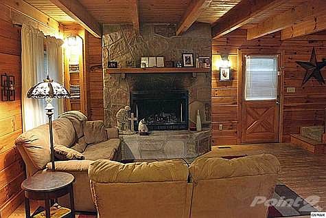 Have you always wanted to live in a cozy log cabin in Pigeon Forge. This beautiful A-Frame cabin is not in an overnight rental resort. It is in a quiet homeowner subdivision. Just minutes off the main strip, this A-frame log cabin features an open living room, kitchen, dinning room combo with stone, wood burning fireplace and hardwood floors. Enjoy the beautiful mountain view from the front deck. Wood floors have been recently refinished, and new carpet installed.