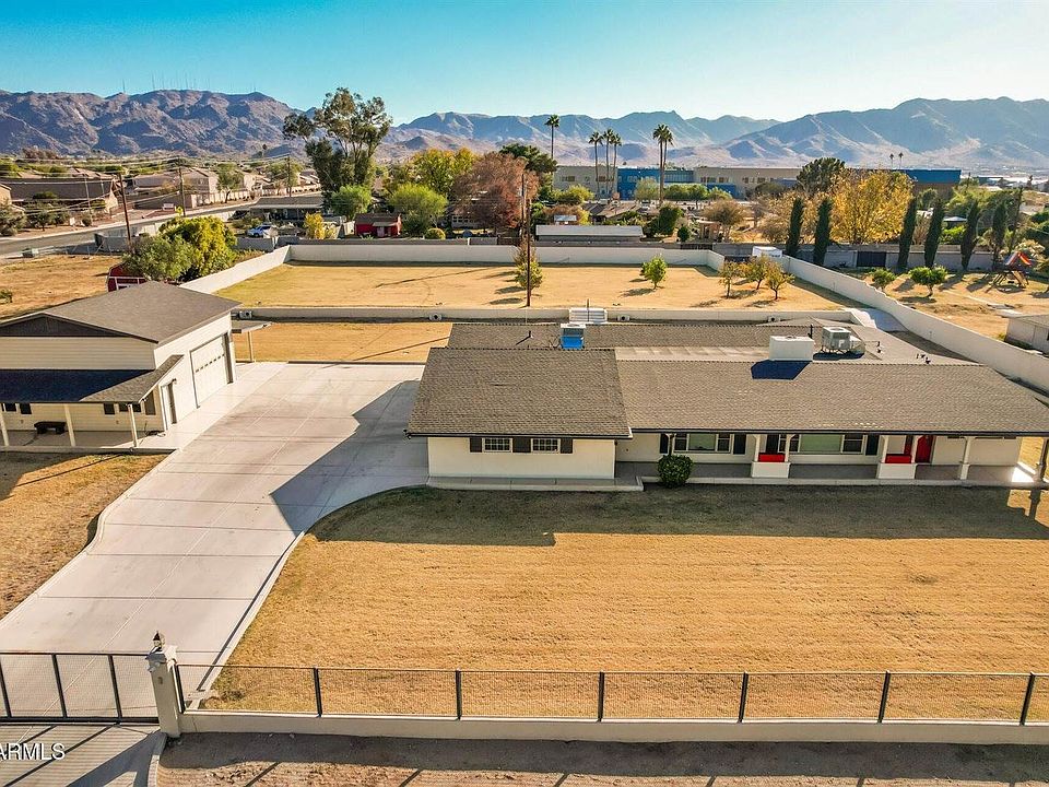 Come and see this beautiful and updated contemporary ranch home. THere is a highly finished gate as you enter the property to give you the sense of privacy. As you enter the drive way you are welcomed with a gorgeous view of the mountain and an immense backyard. This home has all the upgrades you need. The oversized kitchen boasts a state of the art professionally culinary gas oven. It is topped with a beautiful hood. The kitchen offers a beautiful copper sink with plenty of natural light. There is a large walk in-pantry with its own cabinets and countertop. There are two large islands and plenty of cabinets to make this kitchen one of a kind. The main house boasts two large rooms. The master bedroom has a elegent door that leads to the backyard. The master bathroom had been updated with exquisite tile work and a walk through shower. There is a large double vanity with a great walk-in closet. As you walk through the home you will love the vaulted ceilings throughout to make it feel very open. There is a separate guest quarters under the same roof that is a one bedroom one bathroom. This is an ideal living area to have your own space. On the property is a grand workshop with a large garage door that has 1500 sqft of garage. You can utilize this to store your toy or utilize it as a shop as you need. The shop has windows and doors to enter it. It has a porch to one side and an awning on the other for more parking. Come take a look and you will see what a great property this is. It is ideal to have your own space with a large irrigated yard. You will see magnificent mountain views and be able to enjoy the stunning sunsets in your private ranch style home.