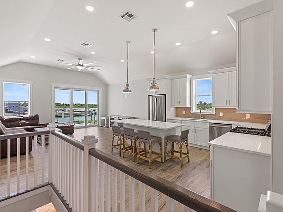 Welcome to 713 W Montgomery Ave, a stunning new New Construction home featuring 4 bedrooms & 3.5 baths. Experience luxury living at its finest with front and back water views that provide stunning views at sunrise and sunset. This beautiful home is a perfect blend of luxurious features both inside and out exemplifying modern elegance and thoughtful design. Inside, the home features recessed lighting and 9 ft walls on the first floor, creating a spacious and inviting atmosphere. The second floor boasts vaulted ceilings for an airy feel. The ground floor entry welcomes you into the foyer where you can access the large garage and take the elevator or head up the stairs to Bedrooms 1, 2, 3 and the Laundry Room. Bedroom 1 includes a south facing balcony and shared bathroom access to Bedroom 2. Head further down the hall past the elevator and laundry room complete with a topload washer and dryer. Bedroom 3 offers a private bath and north facing balcony. As you head upstairs to the main living space you are welcomed into the Kitchen & Living space. This modern kitchen is a chef's dream, with 42-inch white shaker cabinets, a glass tile backsplash, under- counter lighting, and crown molding. Quartz countertops and an undermount sink add a touch of luxury. The kitchen is equipped with a full suite of stainless steel appliances, including a stove, refrigerator, microwave, dishwasher and mini- fridge. Off the Living room is a south facing deck equipped with a gas line for easy grilling and an exterior water connection. Behind the living area is the half bath, elevator access and Bedroom 4 - complete with its own private bath and north facing balcony access. This home features 8 ft doors throughout, adding to the sense of grandeur. The oak railing with stained oak steps and white risers provides a beautiful transition between floors. The bathrooms feature Mœn shower fixtures and porcelain tile floors, with quartz countertops for a modern look. The bedrooms are carpeted and include recessed lighting with ceiling fans for comfort. The home is equipped with an instant hot water heater. The exterior vinyl siding features cedar Impressions siding on both the front and rear, complemented by sleek black 8 ft sliders and windows. The Azeck trim around the windows, doors, and decks adds a touch of sophistication, while the elegant black gutters provide a seamless finish. The front and rear fiberglass decks, with their stylish glass railings, offer perfect spaces for relaxation and entertaining. The mahogany ceilings above the entryway and decks and along with recessed lighting and a paved patio out back, complete the exterior's exceptional features. Don't miss the opportunity to own this exceptional property! ***5 Year Tax Abatement Please submit all offers on Proposal to Purchase. Please DO NOT submit contracts. All offers MUST include Proof of Funds or Pre-Approval.