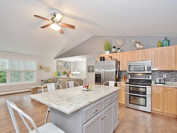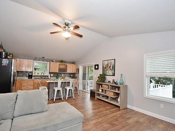 - Kit Dscrp: Ceiling Fan(s), Deck - Exterior, Ceiling - Cathedral, Breakfast Bar / Nook, Kitchen Island, Stainless Steel Appliances, Flooring - Laminate