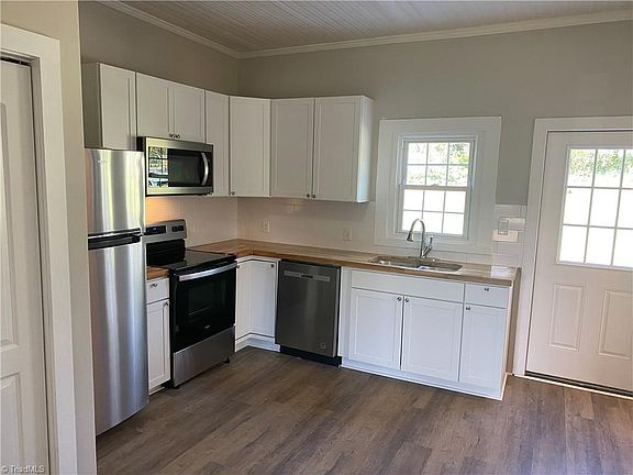 Nicely remodeled cottage in great Washington Park adjacent location near I-40, Silas Creek, downtown WS. Nice, deep front porch, 9 foot tongue and groove ceilings, white shaker style kitchen cabinets, teak countertops, and stainless appliances. New heat pump, kitchen cabinets, teak countertops, bathroom, flooring, insulation, concrete patio and much more in the last few months. Lease purchase available. See Agent Only Remarks for Terms.
