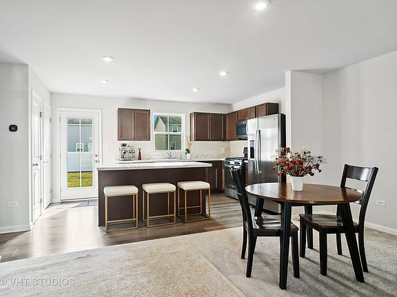 Welcome to Hampshire's esteemed Prairie Ridge community! Step into this 4 bed, 2 1/2 bath beauty where there's no need to wait for new construction as this 1 year new home is truly move in ready. The inviting open floorplan of the Birch model perfectly combines functionality and style, with a spacious living room that flows seamlessly into the dining area. The heart of the home, the kitchen, features upgraded stainless steel appliances, a generous island with extra cabinet space, and a large, single bowl stainless steel sink, making meal preparation and clean up simple and easy. On the second floor, you'll find four generously sized bedrooms, including a primary suite with walk-in closet and a beautifully appointed en-suite bath with a dual vanity. The luxury vinyl plank flooring and new plush carpeting throughout the home enhance its modern appeal. Enjoy outdoor living in the recently fully fenced backyard, ideal for relaxation and entertaining. Additional highlights include a convenient second-floor laundry room, fully insulated basement ready to be transformed for additional living space and smart home features like ecobee thermostat and wifi enabled garage door opener. Located in the highly regarded Hampshire school district, this home offers both quality and comfort. With builder warranties that transfer to the new owner, you can move in with peace of mind. Welcome Home!