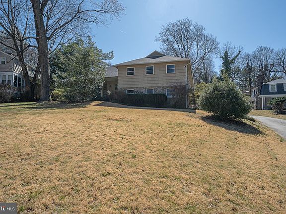 Welcome to 713 Woodfield Road, a five bedroom, three full bath, single family, mid-century split level with a fireplace and two car attached garage, on a nearly one-half acre lot. This cute Villanova neighborhood has quiet streets, and this house is set directly across from Ivywood Lane, a cul-de-sac, and is perched up nicely on a gently sloping lot. This sunny house has a private driveway and a large, bright rear flagstone terrace. The south-facing living room has pretty hardwood floors and a picture window to the terrace. The large, west-facing family room/den has bright windows and a wet bar. There is a great family floor plan to this house. The front door has a covered portico with flagstone steps and planters. Enter to a center hall foyer with hardwood floors and a coat closet. Full, sunny living room with picture window gives a straight thru foyer view. Living room has fireplace and rear door out to the flagstone patio. Dining room to the left of the foyer flows to kitchen. Foyer has steps down to the lower-level family room, which is at grade, and walks out to the drive and garage. There is a bedroom and full bath en suite on this level. Foyer also steps up to the second floor, with large owner's bedroom and full bath with stall shower en suite. Three additional family bedrooms share a full hall bath. Bedrooms all have hardwood floors, closets and pretty windows. There is a large cedar closet in the hall as well. Steps lead up to a sunny third floor, which functions as an optional 6th bedroom, library, or office/den. Family room has steps down to a partial, unfinished basement with laundry and mechanicals. Two car attached garage has secure, interior access to basement. 713 Woodfield offers quite a lot of house for the price, with excellent and exciting mid-century modern potential, along with excellent acreage, in a nice little neighborhood in sought-after Lower Merion Township.