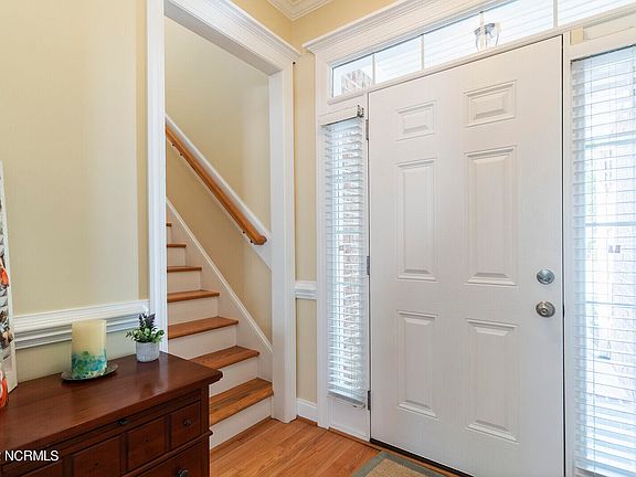Brick patio home in the popular neighborhood of Blue Point located on quiet cul-de-sac . Home features 5 bedrooms,3 full baths ,sunroom and 2 car garage . Bright and airy floor plan .Neutral decor . Private fenced yard with patio . Great room has gas log fireplace and opens to formal dining room. Kitchen has breakfast bar, dining area , pantry , and plenty ofcounter space. Primary bedroom suite features bathroom with shower and separate garden tub , and large walk-in closet. There are 3 additional bedrooms and a full bath on the main level . Upstairs are 2 bedrooms , full bath, and walk-in storage . E-Z to show . Front lawn maintenance is included in HOA dues .2-10 Home Warranty included .Community offers pool,tennis, clubhouse,and kayak launch. Beaches,restaurants,shopping,schools,golf courses,and medical facilities are nearby. Minutes to Interstate 40 ,airport,and the 140 bypass. Easy commute to GE ,Corning, UNCW and downtown historic Wilmington.