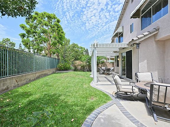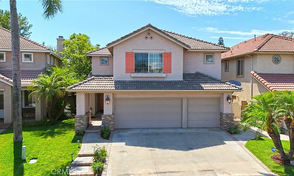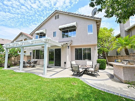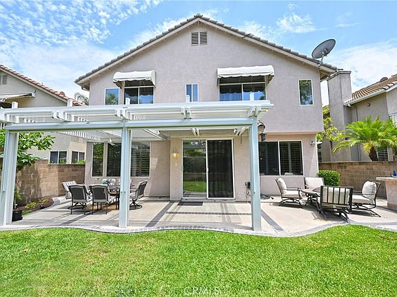 Welcome to a lifestyle of comfort & convenience in this stunning 5-bedroom, 3-bathroom home located in the prestigious Fairways North community of Placentia. This expansive property boasts 2,572 sf of living space on a spacious 5,661 sf lot. Step inside & discover a flowing floorplan that caters to your every need. The formal living room echoes this elegance, providing a perfect space for entertaining. Plantation shutters in the dining room add a touch of sophistication, while recessed lighting, crown molding, & surround sound speakers enhance the ambiance. A gorgeous kitchen featuring quartz countertops, modern stainless steel appliances & repainted cabinets. A family room featuring a brick fireplace with a wood mantle, shutters & surround speakers. A downstairs bedroom with an en-suite ¾ bathroom is ideal for guests or a home office. A spacious primary bedroom, adorned with shutters, a ceiling fan, & crown molding. The en-suite bathroom boasts luxurious features like tile flooring, a large shower with glass doors, quartz countertops, dual sinks, & dual closets with built-in organizers. Three additional bedrooms provide comfortable retreats for family or guests. Each room features recessed lighting, crown molding, & window shades. Bedroom two boasts mirrored wardrobe closet doors & sconces, while bedroom three offers a built-in office system. A second full bathroom upstairs features quartz countertops, dual sinks, and a modern shower combo. Enjoy a 3 car attached garage with built in storage cabinets. Step outside and create lasting memories in your entertainer's dream backyard. Relax under the shade of the Alumawood patio cover with retractable shades, or unwind by the built-in barbecue island. The space is fully equipped with LED lighting and a remote-controlled fan for ultimate comfort. A concrete patio with a brick ribbon adds a touch of elegance, while exterior awnings over the back windows upstairs provide additional shade. Peace of mind comes standard with this move-in-ready home. Enjoy the benefits of a recently replaced HVAC system and a newer water heater. The interior boasts fresh paint throughout, luxury vinyl flooring in the kitchen and baths, and a new stove and microwave. The gated Fairways North community offers a resort-like lifestyle with a sparkling pool and spa, lush common area landscaping maintained by the HOA, street maintenance, security, and a tot lot, all for a very reasonable monthly fee.