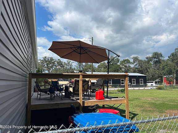 ACTIVE WITH CONTRACT - ACCEPTING BACK UP OFFERS! BUILT IN 2022! Over and ACRE of land (1.1 ACRES) located in a sought after neighborhood of Brooksville. NO HOA!! ZONED AR2! This 3 Bedroom 2 Full Bath Double Wide has a Fully fenced backyard. Desirable open layout and beautiful colors throughout. Kitchen features island with breakfast bar, window over sink that overlooks backyard, tons of cabinets and countertop space, eating area, and Convenient laundry area with shelving. Master bedroom is a great size witha walk in closet a master bathroom featuring new custom walk-in shower and extra vanity for storage. On the other side of the home are the 2 additional bedrooms and guest bath. The outside deck is perfect for entertaining. Bring all the toys and enjoy this fenced property! 9x20 convex container for extra storage. This is the one you've been waiting for! Tenant occupied until 10-31-2024. Do Not disturb tenants and do not go to the property without an appointment as the tenant has large dogs.