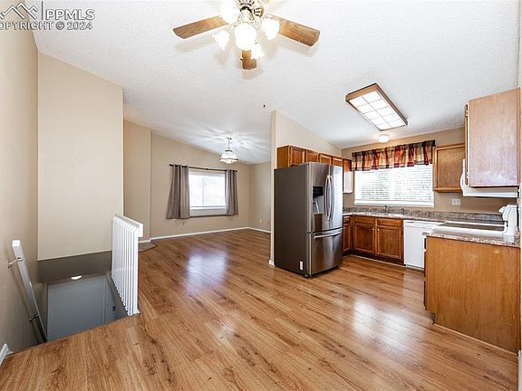 Move-in Ready Charmer in District 20! Welcome to a beautifully updated home nestled in the heart of Colorado Springs. Step inside to discover a spacious layout featuring four comfortable bedrooms and two contemporary bathrooms. The centerpiece of the home is the open-plan kitchen and living area, providing ample counter and cabinet space for all your culinary needs. Enjoy cozy evenings by the inviting fireplace, which adds a touch of warmth and character to the home. Recent upgrades include a new roof, fresh exterior paint, and storm doors—ensuring peace of mind and an added layer of home protection. Additional interior updates like new carpeting, paint, and plumbing fixtures make this home truly move-in ready. The large backyard patio is your own private retreat, perfect for al fresco dining and gatherings with friends and family. Whether it's a quiet morning coffee or an evening barbecue, this space offers endless opportunities for outdoor enjoyment. Located in the desirable District 20, the home is conveniently close to parks, schools, and local shopping centers. Enjoy the ease of access to community amenities while living in a serene neighborhood setting.