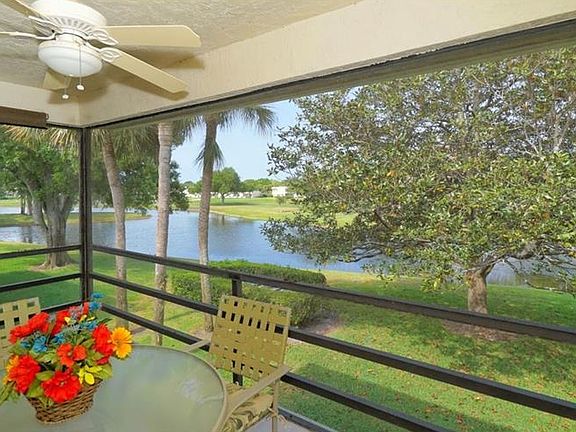 Spectacular golf and water views from this two bedroom two bath spacious condo located in desirable Fairway Bend @ Palm Aire. Beautifully decorated and sold turnkey furnished. New HVAC 14 SEER in 2017. New porcelain tile 19" flooring with noise suppression barrier 2016 in kitchen, dining, hall and lanai. Quality carpet in both bedrooms. Nice storm/screen door at front entrance. Beautifully maintained, the kitchen boasts beadboard ceiling with decorative lighting, upgraded ceiling fans, crown moldings in living and dining spaces, spacious lanai, private exterior storage closet and community storage closet for bikes, etc. Designated parking space in front of building. Large heated community pool, well managed association, and dependable handyman on staff. Don't miss this lovely condominium....great value at this price!
