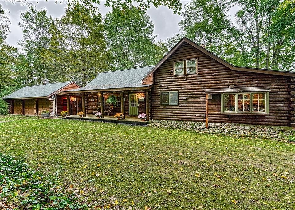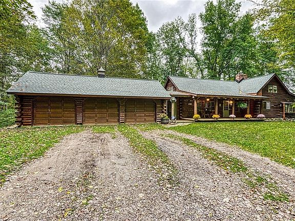 This Meticulous Maintained Log Home Features 3 Bedrooms, 2.5 Baths, Gorgeous Hardwoods, Vaulted Ceilings, Gas and Wood Fireplaces. First Floor Bedroom, Kitchen offers Double Ovens, Gas Cook Top & New Refrigerator & Dishwasher. Spacious Dining Room with Bay Window & Bright Sunroom w/ Power Awning that Leads You to a Composite Wrap Deck that Overlooks the Spectacular Land. Finished Basement/ Rec Room with Additional 690+/- sq ft. Large Front Porch to Enjoy Your Surroundings. 3 Car Garage, 2 Story Barn w Electric and Shed. This 57+ Acres of Peace and Tranquility Offers a Large Pond w/Fish. Updates Include First Floor Bath with New Shower Door and Tile Work, Roof 2018, Exterior Recently Stained and Caulked. Don???t Wait Schedule you???re Showing Today!