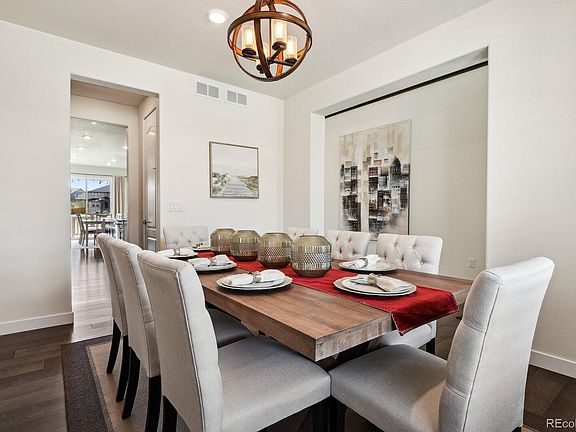 Experience a lifestyle of luxury and design with this exquisite residence located in Castle Pines with many upgrades and details which will exceed your expectations. This home is robustly appointed with high-end details and finishes, complemented by their ability to provide comfort and function. Upon entering the grand foyer you will be elegantly welcomed by the stunning generously sized 2-story great room with an abundance of natural light. Overlooking the great room, the impressive chefs kitchen makes a statement with a deep gray granite oversized island perfect for entertaining blending with the dark Maple Cabinets, wifi stainless steel appliances and much more. For those beautiful days step in to the private back yard with stunning views and open to a covered deck. The main floor includes a formal dining room, eat-in kitchen area as well as a main floor bedroom/office and full bathroom. Upstairs you will find a large beautiful primary suite with tray ceilings, gorgeous views, luxurious primary ensuite bath featuring spa-like shower, dual vanities and separate water closet. The laundry room is conveniently located next to the spacious primary walk in closet. Also upstairs you will find an elegant loft area and two additional secondary bedrooms with Jack and Jill bath. This home has a 3 car garage and is conveniently located next to Elk Ridge Park, grocery store, great schools and fabulous restaurants with easy access to the interstate 25.