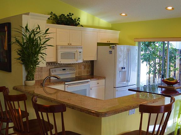 Beautiful home in sought after Northtree Subdivision. 'A' rated schools within walking, biking distance. Tiled throughout, granite counter top, island in kitchen with recessed lighting. Fenced yard, beautifully landscaped with bearing fruit trees. Community swimming pool, and recreational facilities and natural lake with a dock for boating. Close to shopping, recreational parks, beach, fine dining etc etc. His and her's sink in luxurious master bathroom with a garden tub, and a separate shower. Relax in the screened-in patio or lounge in your hammock under the shade of the fruit trees in the fenced backyard. Owner pays for lawn service, basic cable tv