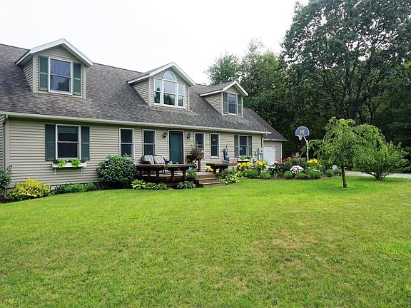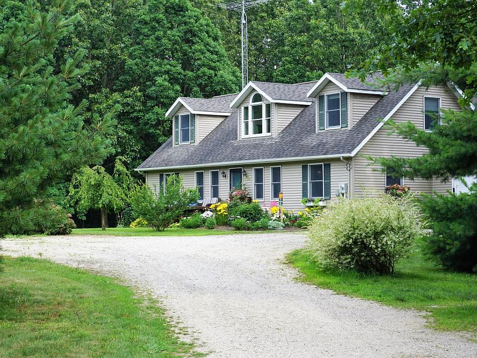 Welcome home to this breath-taking 3,400 sq. ft. country oasis! On 10 acres of land, set back from the road and surrounded by wooded trails filled with wild life, you will love the private, serene setting. As you drive up the long driveway, the front of the house slowly emerges through the mature Pine trees. Aside from the great curb-appeal of this home, the first thing you will notice is the pristine landscaping and an array of beautifully colored flowers. Enter the home through the 752 Sq. Ft., 2 stall, completely finished garage or the charming front deck with built in bench seating. When you walk in the front door, the elegant Brazilian Cherry hard wood floors will immediately catch your eye along with all the natural light coming from the abundance of double-hung Anderson windows