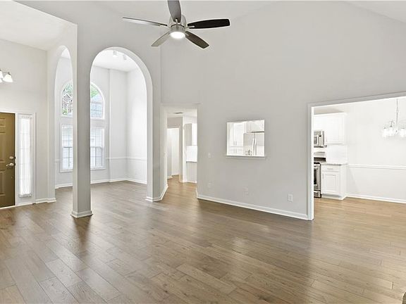 Move-in ready home! Upgrades include new hardwood floors and a brand new kitchen with new cabinets, countertops and stainless steel appliances. Perfect open floorplan with master on main level, plus 2 additional guest bedrooms, family room with stone fireplace, and an office area. Master has large walk-in closet and the master bath includes double vanity and separate tub and shower. Bonus room on the second level. Finished terrace level includes 2 additional bedrooms, entertainment space, wet bar, and outdoor sitting area under the dry below deck system. Enjoy the private setting in the backyard on over .5 acre lot. Located mins from 400, brand new Publix, GA Premium Outlet Mall & Lake Lanier. Friendly community includes swimming pool and multiple tennis courts.