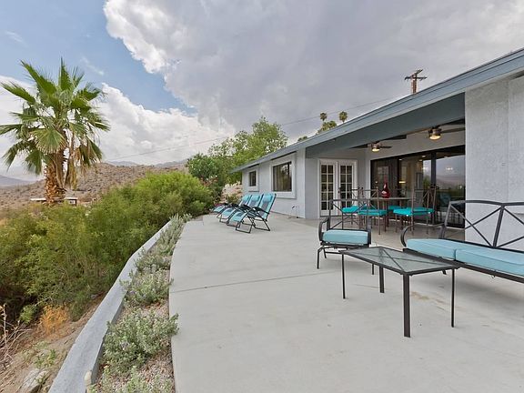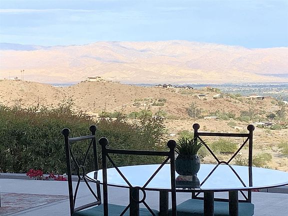 Most incredible views in Cahuilla Hills, this property offers a spectacular 180 degree view of the mountains and valleys, and breathtaking views of the city lights at night. This one of a kind property, sits on 2 acres and offers a truly peaceful and rural lifestyle, all just minutes from downtown El Paseo. Totally remodeled with an open floor plan and modern kitchen, marble counter tops,fabulous back splash and paved cement gray floors give it a contemporary and beautiful feel. Living room opens to entertaining area on patio which has a view of Stone Eagle golf course and the most expansive down valley views in Cahuilla Hills. Outside you will find a pool and spa which were pebble teced in 2016 with an attractive turquoise gray surface.. And the solar is paid for! So you can expect low electric bills. Property has successful air bnb rental history.