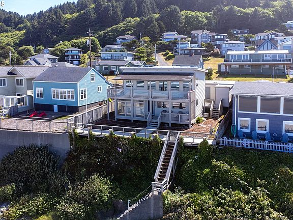 Oceanfront Home in Roads End with your own private stairs to the sand and surf! Enjoy breathtaking panoramic views from this beautifully situated home in the desirable Roads End neighborhood. This property offers the ultimate coastal living experience, family vacation home, or investment opportunity. The main living area features expansive picture windows that frame stunning ocean views, including a dramatic vista to the north of God's Thumb'a striking basalt headland that rises majestically from the sea. Outdoor living is enhanced by spacious decks on both the main and lower levels, partially enclosed with glass for wind protection while preserving the view. This home offers four bedrooms, two with full ocean views, a versatile den perfect for relaxation or entertainment, and 2.5 bathrooms. The interior showcases a Mid-Century Modern aesthetic in the living and kitchen areas, complete with a double oven for added functionality. Recent updates include a new roof, fresh exterior siding, updated interior and exterior paint, and brand-new carpeting throughout. 2025-11-28