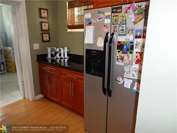 Updated 4 bedrooms 2 bathrooms with beautiful kitchen featuring wood cabinets, granite counter tops and stainless steel appliances. New 2018 refrigerator Some of the new features of this home include : Hurricane impact glass windows and sliding door : New roof in 2016, new A/C in 2018. Large screened in patio and huge privacy fenced back yard. New water heater approx 3 years ago. House re-stuccoed, added beautiful moldings and freshly painted (beautifully). Remodeled walk-in closet.