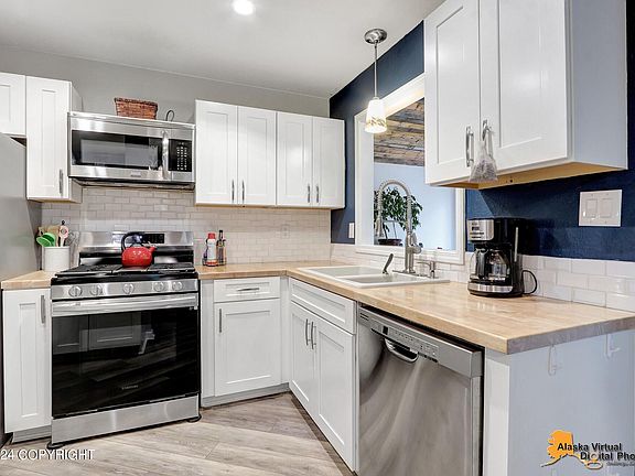 MULTIPLE OFFERS RECEIVEDCharming 4-bed, 2-bath home beautifully blends comfort and style. Cozy living room has tasteful wood-burning stove and spacious kitchen showcases elegant subway tile. Adjoining the kitchen is a stunning sunroom w/ vaulted ceilings and gorgeous floors. Tons of light stream through a wall of windows that look out to the lrg yard, complete w/ a fun slide off the deck!