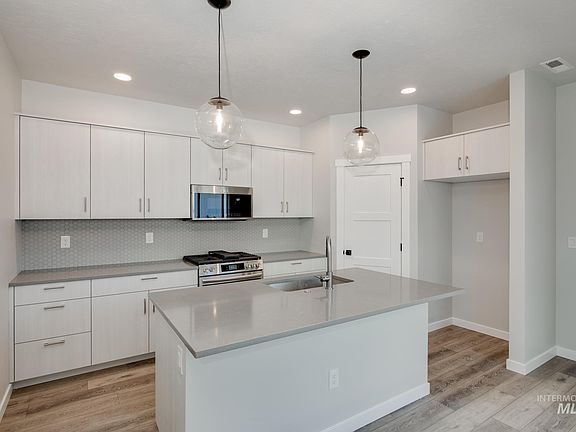 Step into a brand new home in Boise, Idaho and enjoy its benefits and stress free living! Cozy up to low-maintenance living in the Boulder 1563! The main level offers an open floor plan where the living room, dining area, and kitchen flow seamlessly. A side patio off the kitchen helps blend outdoor and indoor living so you can make the most out of pleasant weather. The kitchen includes spacious solid surface countertops, stainless steel appliances, and a gas range. Head upstairs to find all 3 bedrooms and a centrally located laundry room. The primary suite enjoys an abundance of natural light, spa-like en suite bathroom, and a spacious walk-in closet. Full landscaping and full fencing are included. Photos are actual home.