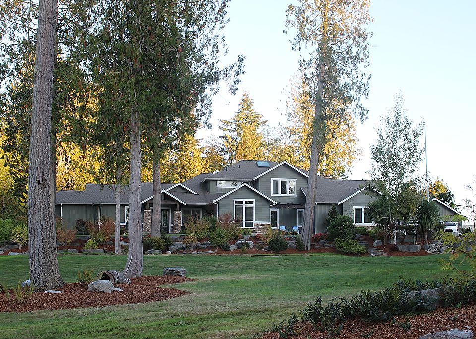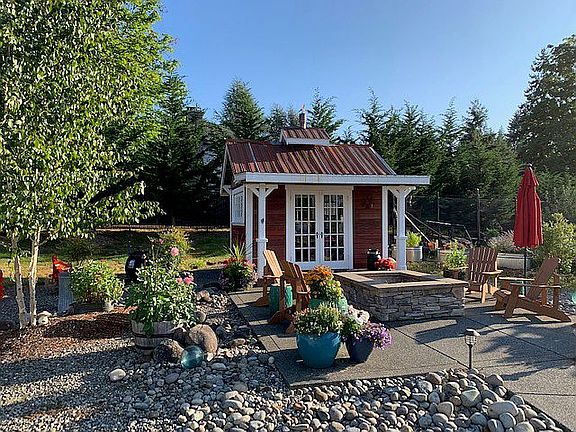 Beautiful custom home that is well suited for entertaining, multi-generational, and large families. Water, mountain and territorial views. 2 large master suites downstairs, all bedrooms with private baths. Large open chef kitchen with 2 dishwashers. This home has a laundry room on both floors for convenience and a large craft / exercise / playroom on the second floor above the garage. All cabinet surfaces have granite throughout the house. Approximately 2600 square feet of wood floors downstairs and carpet upstairs. This luxury property has a private well that is 380 feet deep, and power is backed up with a natural gas generator on an ATS switch. It is situated on 5.21 fenced and gated acres. A large fenced ORGANIC garden area with potting shed next to the house with a stone fire pit for outdoor gatherings. Extensive landscape and hardscapes throughout the property.