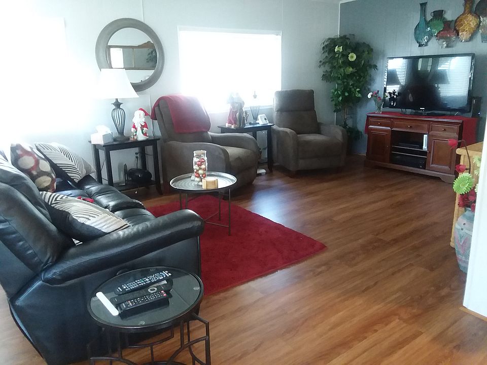 Well kept 2-bedroom, 2-bathroom home in the gated 55+ community of Spanish Trails Village where you own the land. This roomy home features an open floorplan and newer wood-look laminate flooring throughout. Large living room w/ceiling fan and dining area w/room for table that seats 6 and built-in china cabinet. Beautiful kitchen with tile backsplash, custom countertops, closet pantry and all appliances. From the living room, French doors lead you out onto the 8x12 Florida room w/new windows and tile flooring. Roomy master bedroom w/ceiling fan and giant 5x8 walk-in closet. Master-bath features custom countertops and two-tone paint and custom wall accents. Bedroom-2 w/ceiling fan and walk-in closet and bathroom-2 w/custom countertops and wall accents. Unit features a new AC unit (2017) and new hot water heater (2019). Giant 12x42 carport and utility shed w/washer and dryer connections and extra storage space. Landscaped lot has fruit trees. Spanish Trails Village is the ideal winter retreat and is a super friendly community with community pool, shuffleboard and clubhouse w/daily activities. Low monthly HOA and a location that can't be beat. Directly across the street from the hospital and off HWY 301 where all the shopping and restaurants can be found.